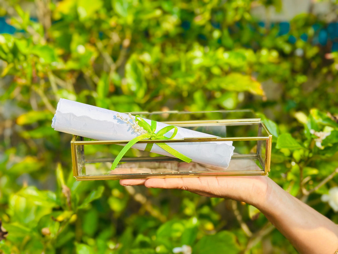 ✨ Key Highlights Premium Glass & Brass-Coated Metal BoxMade with clear glass panels and a...