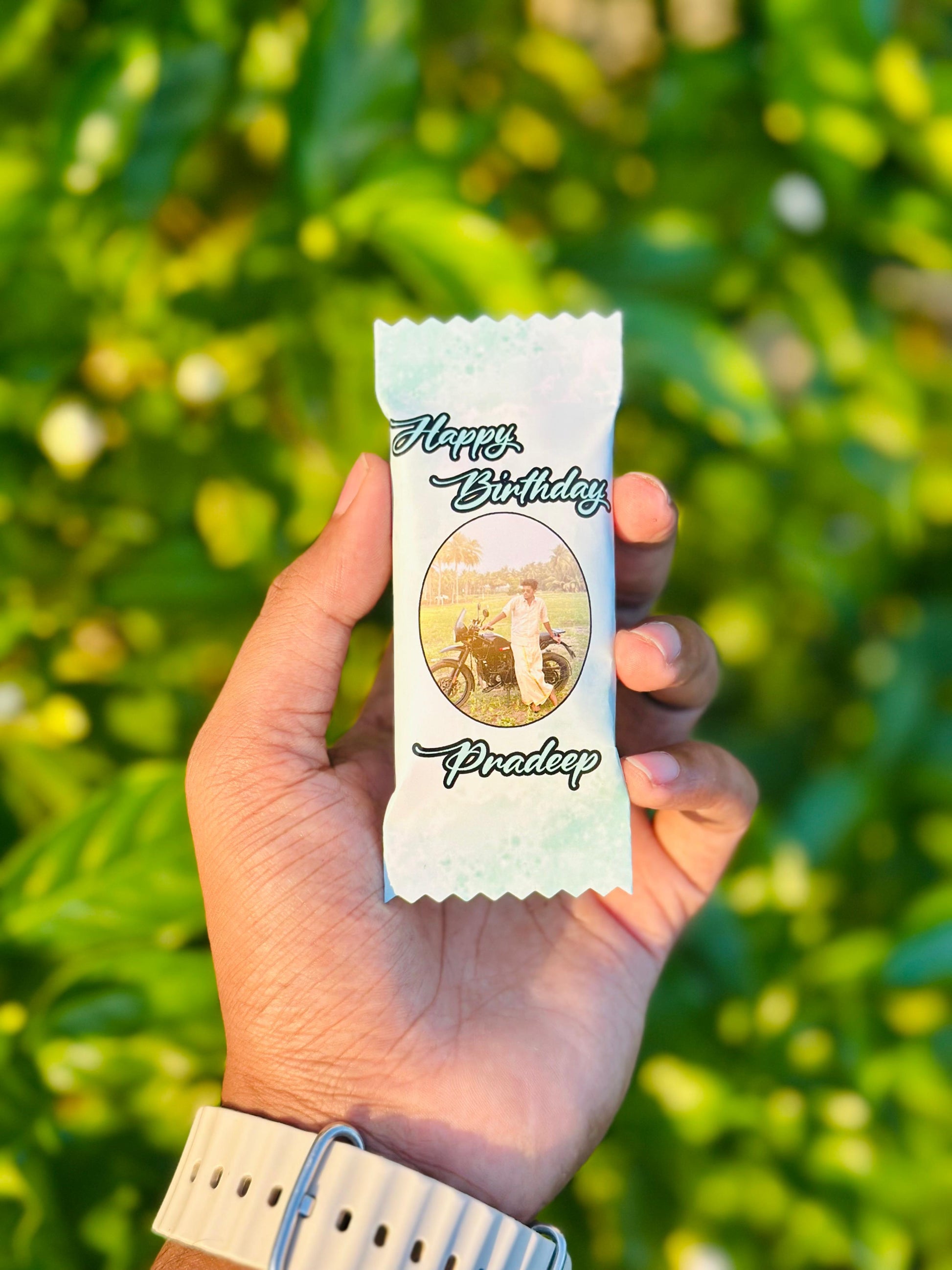 Each chocolate wrapper is printed with your photo, name, logo, or a heartfelt message — perfect for birthdays, weddings, anniversaries, corporate events, or festive gifting. 🎁