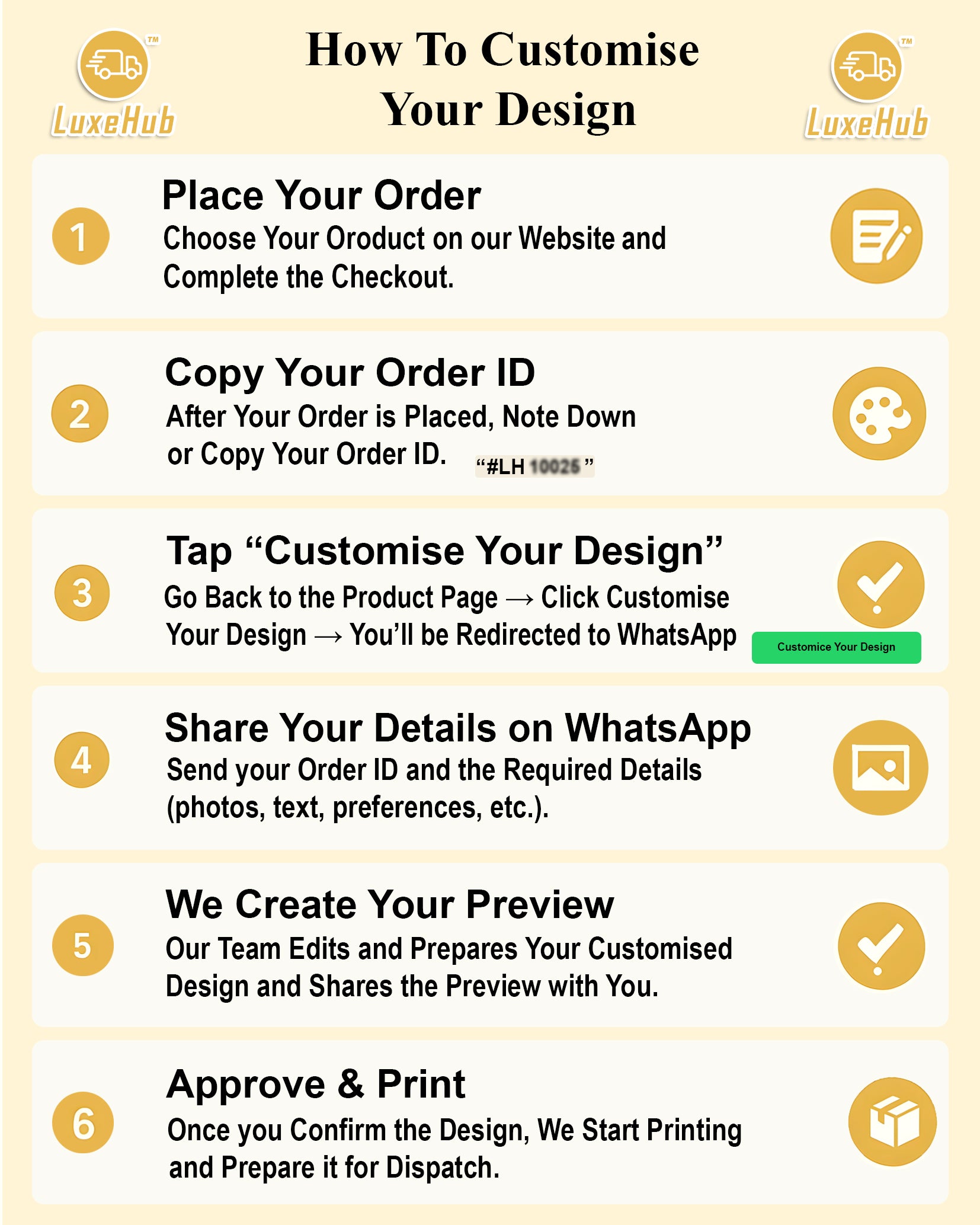 Just click the “Customize Your Design” button available on the product page, and our team will guide you step-by-step to create your perfect design.